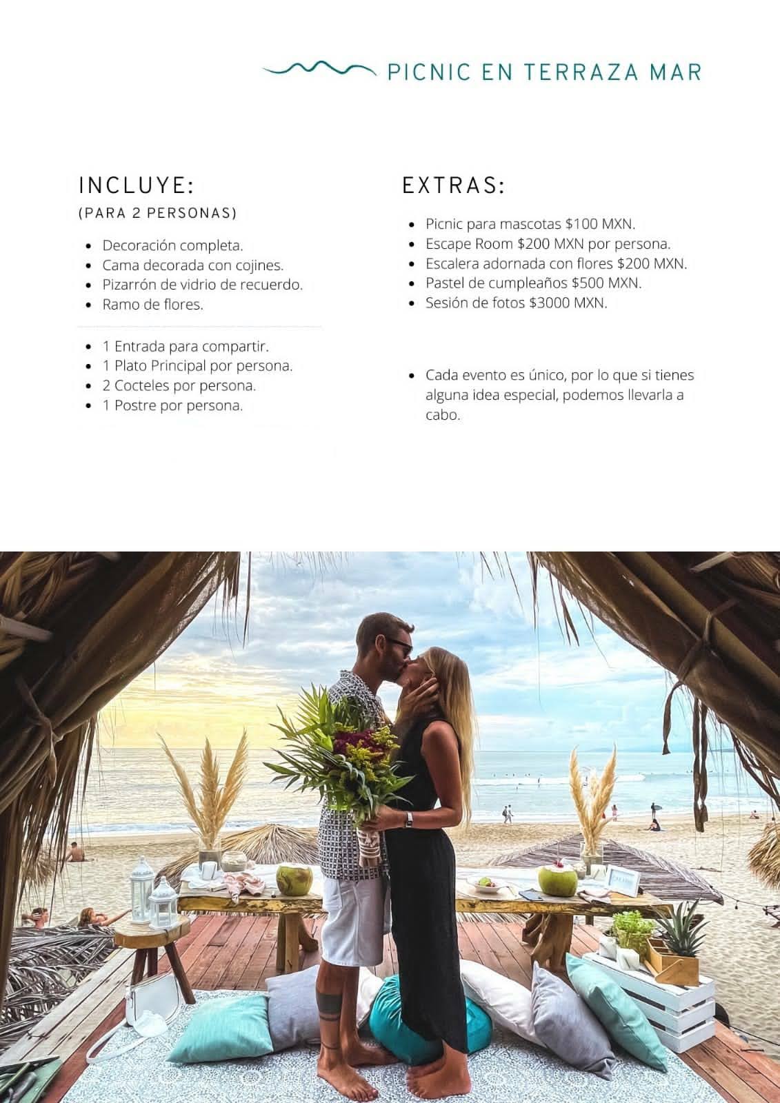 Un pique-nique romantique dans une palapa privatisée sur la plage de La Punta, face a l’océan et aux surfeurs. Une surprise idéale pour séduire et impressionner votre conjoint ! Plus de détails photo ci-dessous.